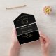 Contemporáneo, simple, código qr, negro y dorado, moderno, elegante Boda todo en una sola invitación. Caligrafía triple, invitaciones nupciales mínimas, simples, únicas, modernas. Personalizar con sus detalles. Orden a tiempo para evitar una decepción.