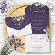 Invitación Todo En Uno Monograma Botánico Verde de Boda Púrpura
