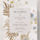 Captura el encanto de la naturaleza con nuestra rústica invitación a bodas boho, con delicados grupos de flores silvestres secas, prensadas y helechos dispuestos sobre un fondo blanco cremoso. Las cajas de texto de color crema ofrecen un contraste suave para tus detalles, enmarcadas por la belleza orgánica de las texturas botánicas. Con las iniciales de la pareja elegantemente exhibidas en la parte superior, este diseño aporta un ambiente romántico y terrenal a tu día especial, perfecto para bodas con un toque natural y caprichoso. Creado por Simply Farmhouse Press.