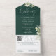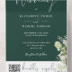 Invitación Todo En Uno Monograma de floral verde esmeralda Boda de código