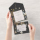 Invitación Todo En Uno Monograma de flores silvestres rusas Código QR neg
