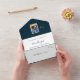 Todo esto en una tarjeta de invitación a la boda es especial. Obtienes tu tarjeta de invitación y la tarjeta RSVP todo en uno. Puedes personalizar la elegante tarjeta de invitación a la boda costera con tu foto de pareja, Intro, nombres, ocasión, fecha, dirección, rsvp, comidas y otros colores de fondo a tus preferencias. Incluso la imagen es cambiable. La combinación de azul marino y blanco es armoniosa y la tipografía es blanca y azul. Se trata de un diseño costero sencillo y minimalista, con unos fondos marinos azules y blancos. Puedes sellar con elegancia y mandar esta invitación tridoblada a una boda económica. Enviar la tarjeta postal RSVP de vuelta al remitente. Haz que este diseño especial sea tuyo y siéntete como la elegante pareja costera del futuro. Hobinishop