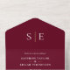 Esta moda minimalista invitación a la boda "todo en uno" puede ser personalizada con sus iniciales de monograma e información sobre el día de la boda en un fondo de color burdeos. La invitación incluye una tarjeta RSVP perforada que puede ser dirigida individualmente o dejada en blanco para que pueda escribir a mano los detalles de la dirección de su invitado. Diseñado por Thisisnotme©