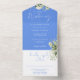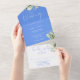 Invitación Todo En Uno Monograma floral azul de aciano de vegetación para