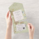 Invitación Todo En Uno Monograma Flores silvestres rusas Código QR verde