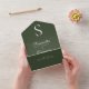 Invitación Todo En Uno Monograma moderno Código QR verde mínimo oscuro