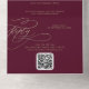 Invitación Todo En Uno Monograma romántico de borgoña Boda de código QR