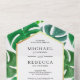 Aprovecha tu estancia con esta elegante invitación de bodas con hermosas hojas tropicales y falsos bordes de Relieve metalizado dorado con una tarjeta postal RSVP desmontable. Simplemente agregue los detalles de su evento en esta plantilla fácil de usar para convertirla en una invitación única.