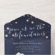 Invitación Todo En Uno Montañas de Relieve metalizado dorado azul acuarel