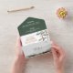 Rústico paisaje montañoso con hierba forestal, montañas, niebla y pinos en tonos verdes y de cobre. El RSVP está perforado, lo que hace más fácil arrancar y enviar de vuelta. La tarjeta postal es el tamaño correcto para enviar a través de USPS a precios de franqueo más bajos, y la solapa posterior que sobrepone la tarjeta postal es lo suficientemente grande como para cubrir las secciones de dirección de retorno y sellos para evitar confusión con el correo. Personaliza con tu propia información. Si necesita ayuda con esta invitación o para solicitudes de personalizado, necesita mi ayuda, no coloque esta mercancía en su carrito. En su lugar, envíeme su solicitud por correo electrónico a shutterbug600@yahoo.com. Nota: sólo puedo ayudar con el diseño - todo el envío e impresión es manejado por Zazzle y las preguntas relativas a su pedido deben ser dirigidas a Zazzle soporte: APOYO: https://help.zazzle.com/hc/en-us/articles/221463567-How-Do-I-Contact-Zazzle-Customer-Support-. No tengo acceso a tu cuenta y no puedo hacer cambios una vez que has hecho tu pedido. Además, CHAT no está en vivo, pero normalmente respondo en 24 horas.