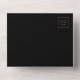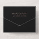 Esta elegante y divertida invitación a la boda incluye un exuberante y romántico ramo floral de púrpura con un Relieve metalizado de imitación de oro rosa y follaje purpurina sobre un fondo negro. Personalizar el texto rosa rosa en fuentes elegantes en rectángulos negros. La dirección de retorno aparece en la solapa exterior y en el reverso de la tarjeta RSVP desmontable sobre un fondo negro sólido.