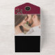 ¡Celebra tu amor con estilo con nuestra cautivadora invitación a una boda todo en uno! El ambiente se caracteriza por sus tonos burdeos y negros, profundos y carnosos, adornados con elegantes acentos florales y botánicos boho. Personalízalo con una foto personalizado de la pareja feliz y un monograma de moda con las iniciales de la novia y el novio, añadiendo un toque de encanto personalizado. Simplifique los RSVP y comparta información adicional sin esfuerzo con nuestro sitio web y código QR incluidos. Deja que tu historia de amor se desarrolle con esta perfecta mezcla de elegancia rústica y encanto romántico.
