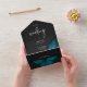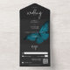 DISPONIBLE CON CÓDIGO QR O CON O SIN OPCIONES DE CENA. El diseño de esta invitación a la boda presenta un tema oscuro y melódico que es sencillo pero impresionante. Un fondo negro de carbón negro oscuro es el lienzo perfecto para una única polilla azul verde azulada, con sus alas para volar. Único y elegante, este diseño se puede utilizar en cualquier temporada. Creado por Simply Farmhouse Press.