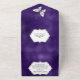 Una hermosa invitación "todo en uno" con un deslumbrante bambú de diamantes lleno de brillantes joyas diamante de imitación enmarcadas por falsos hilos verticales colgantes diamante de imitación y mariposas de plata brillantes. Una tiara aparece a lo largo del borde inferior y el fondo morado parece brillar. Hay plantillas para tu redacción personalizada y la tercera parte de abajo tiene una tarjeta de desgarro que a tus clientes les resultará útil para encontrar el camino a la recepción. Son ideales para fiestas de cumpleaños o eventos y ocasiones especiales. Personalizar la invitación para que se adapte a su celebración.