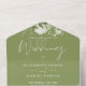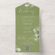 Invitación Todo En Uno Moss Green Floral Código QR Monograma Boda