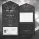 DISPONIBLE CON O SIN CÓDIGO QR PARA ESCAPAR EN LA ZONA RSVP O CON O SIN OPCIONES PARA CENAR. Presentamos nuestra exclusiva y cautivadora invitación de bodas de inspiración gótica, donde la elegancia se encuentra con la mística de la noche. Con un fondo negro angustiado, el texto de estilo gótico blanco exuda un sentimiento de encanto y sofisticación intemporal. En la parte superior, una polilla de ala abierta, sencilla pero impresionante, que recuerda al estilo de la arquitectura gótica, aporta un toque intrigante y encantador a la parte delantera y trasera de la solapa. Prepárate para cautivar a tus invitados con una invitación que los transporta a un mundo de oscuros romanticismo y encanto. La polilla simboliza la transformación y evolución del amor, mientras que el diseño gótico prepara el terreno para un boda que es tanto clásico como misterioso, y que celebra la belleza única de tu historia de amor. Con esta invitación realmente cautivadora, su boda brillará con una elegancia que deja una impresión duradera en todos los que asisten. Creado por Simply Farmhouse Press.