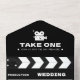 Premiere your big day in cinematic style with this creative movie clapboard wedding invitation. The perfect blend of modern and retro style for couples who love classic Hollywood film and movie aesthetics. Personalize it with your event details and let your family and friends know an all star cast is about to cross a major milestone.