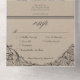 Eleva tu boda gótico con una invitación de bodas de inspiración victoriana con opciones de cena que exudan elegancia y misterio intemporales. Diseñado para asemejarse a un enlace de libros antiguo, este impresionante diseño presenta un intrincado filigree lacado negro sobre un fondo de papel color canto, evocando el encanto de una época pasada. Un murciélago, con sus alas extendidas, se sienta en el pináculo. El texto, "Parte de la muerte dura", puede ser editado y modificado, o suprimido por completo, si lo prefiere. Que tu historia de amor se desarrolle con una invitación tan inolvidable como tu día. Creado por Simply Farmhouse Press.