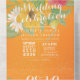 Invitación Todo En Uno Naranja de flores acuáticas Boda Purpurina de oro