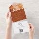 Invitación Todo En Uno Naranja quemado Boda fotográfico mínimo Código QR