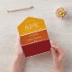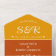 Oro amarillo retro, naranja y borgoña todo en una sola invitación a la boda. Personalízalo con los detalles del evento y el código QR del registro del boda.