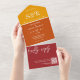 Invitación Todo En Uno Naranja retro Borgoña Boda de código QR