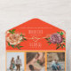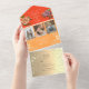 Invitación Todo En Uno Naranja y Boda Floral Rosa