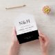 Moderno todo en una sola invitación de boda con un diseño sencillo y mínimo en blanco y negro con tu monograma en negrita junto con tus nombres en un elegante guión de escritura a mano. Utilice la plantilla para generar un código QR simplemente agregando su URL o eliminándolo en la herramienta de edición de diseño.