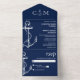 Invitación Todo En Uno Nautical Anchor Boda Navy Blue