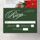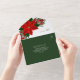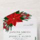 Un elegante boda Navidad, con una sola invitación, presenta una tipografía cursiva, flores de poinsettia rojo floral, bayas rojas, conos de pino y hojas de vegetación y un fondo de color verde oscuro.