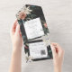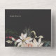 DISPONIBLE CON O SIN CÓDIGO QR. Este diseño está decorado con pinares verdes, bayas rojas, poinsettias blancas y vegetación en un suave fondo negro de carbón vegetal. Un monograma en la solapa trasera completa el aspecto sencillo pero elegante de todo esto en una sola invitación. Las invitaciones todo en uno personalizadas son una combinación única de una invitación personalizado bien impresa y una postal RSVP fácil de desgarrar. ¡Y son tan fáciles de usar! Simplemente se pliega, después sella la solapa de atrás con los tres pegatinas claros incluidos y el correo. Y cuando sus invitados reciben la invitación de su personalizado, ¡simplemente sacan la tarjeta RSVP perforada y la envían de vuelta al correo!