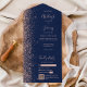 Invitación Todo En Uno Navy Blue Rose Gold Glitter QR Code Wedding