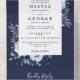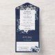 Invitación Todo En Uno Navy Blue Rustic Boho String ilumina a Boda floral