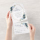 Invitación Todo En Uno Navy Flowers, Blue Flowers, Greenery, Birthday