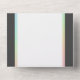 DISPONIBLE CON O SIN CÓDIGO QR O OPCIONES DE SELECCIÓN DE CENAS. Este diseño presenta un fondo negro de carbón vegetal con un área de texto blanco enmarcada en un arcoiris pastel. Un monograma con la primera inicial de la novia y el novio en la solapa exterior lo completa. Creado por Simply Farmhouse Press.