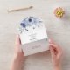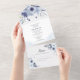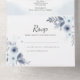 Flores abstractas azules y grises crean un diseño unisexo en esta invitación todo en uno. Parte de la "colección Niko". Visita la tienda hermana www.pixieprints.com para tus necesidades de invitación.