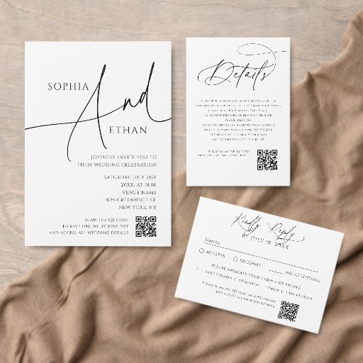Invitación Todo En Uno Nothing Fancy Minimalist Calm White Wedding