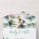 Estas invitaciones a una ducha de color agua incluyen una zona de patios con vegetación de estanques. La tarjeta incluye una tarjeta de rifa de pañales desmontable. Utilice los campos de plantilla para agregar el texto personalizado. Una magnífica y encantadora elección para tu adorable tema de la ducha infantil. Para ver la suite de ducha de bebé inspirada en la naturaleza para niños y más ducha de bebé personalizado, visite www.zazzle.com/dotellabelle Arte y diseño de acuarela único ~ Do Tell A Belle.
