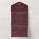 Set on a deep burgundy background with subtle gold accents and elegant serif typography, this all-in-one invitation blends traditional sophistication with modern convenience.