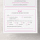 Buganvillas de color rosa claro sobre la pintura botánica blanca boda invitación todo en uno. Personalice esta invitación de matrimonio de respuesta desmontable con sus propios detalles de la ceremonia de boda y agregue sus opciones de comida a sus respuestas desmontables. Una acuarela representa una rama colgante de buganvillas y texto rosa y gris. Ideal para un boda de estilo subtropical o mediterráneo. Hay disponibles otros colores y elementos bodas coincidentes. © Original acuarela a mano bougainvillea pinta y diseño de Sarah Trett para www.mylittleedenweddings.com exclusivamente en Zazzle.