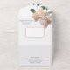 Esta romántica invitación a una boda floral presenta un diseño todo en uno con una tarjeta R.S.V.P. incluida en la parte inferior. El fondo es un blanco sencillo y elegante, con orquídeas acuáticas de colores vivos. Un delicado ramo de flores de orquídeas se retrata en la parte delantera y dos en la parte interior.