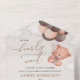 Invite a sus amigos y familiares con estilo y establezca el tono de su día especial con esta encantadora invitación a la ducha de bebé. El diseño presenta un oso bebé con globos marrones sobre fondo beige.