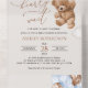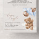 Invite a sus amigos y familiares con estilo y establezca el tono de su día especial con esta encantadora invitación a la ducha de bebé. El diseño presenta un oso de peluche con globos azules sobre fondo beige.