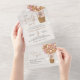 Invitación Todo En Uno Oso, globos rosados, globo de aire caliente, Baby
