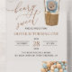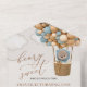 Invite a los amigos y a la familia con estilo y establezca el tono de su día especial con esta encantadora invitación de cumpleaños. El diseño presenta un oso bebé con globos azules sobre fondo beige.