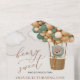 Invite a los amigos y a la familia con estilo y establezca el tono de su día especial con esta encantadora invitación de cumpleaños. El diseño presenta un oso bebé con globos verdes sobre fondo beige.