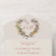Invitación nupcial "todo en uno" con sus iniciales de monograma dentro de un huerto de corazón floral de bonito y sus detalles en una tipografía elegante. La invitación incluye una tarjeta RSVP perforada. Diseñado por Thisisnotme©