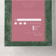 Ilustracion de arte de línea blanca de hojas de palma patrón sobre fondo verde oscuro con texto blanco y diseño de conchas sobre arco rosa con borde amarillo. El exterior es rosa, con dirección de retorno y ilustracion de hojas de palma en la solapa. Rsvp abajo.