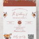 Impresionante y moderna invitación a la boda todo en uno con elementos florales de pampas hierba boho en la gruesa terracota, rústicos tonos de cabaña de otoño. Agregue la dirección URL de su sitio web boda y se actualizará el código QR. Una cómoda invitación de presupuesto sin necesidad de añadir gabinetes separados. Haga clic en personalizar/personalizar para incluir sus propios detalles. El color de fondo se puede cambiar si se desea.