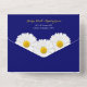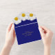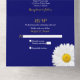 Tarjeta de invitación de boda con margarita shasta blanca sobre fondo azul marino y respuesta desglosable. La invitación de boda simple cuenta con una hermosa margarita blanca con centro amarillo sobre fondo azul marino. Los colores amarillo, azul marino y blanco hacen que esta invitación sea ideal para una boda rústica o de verano.